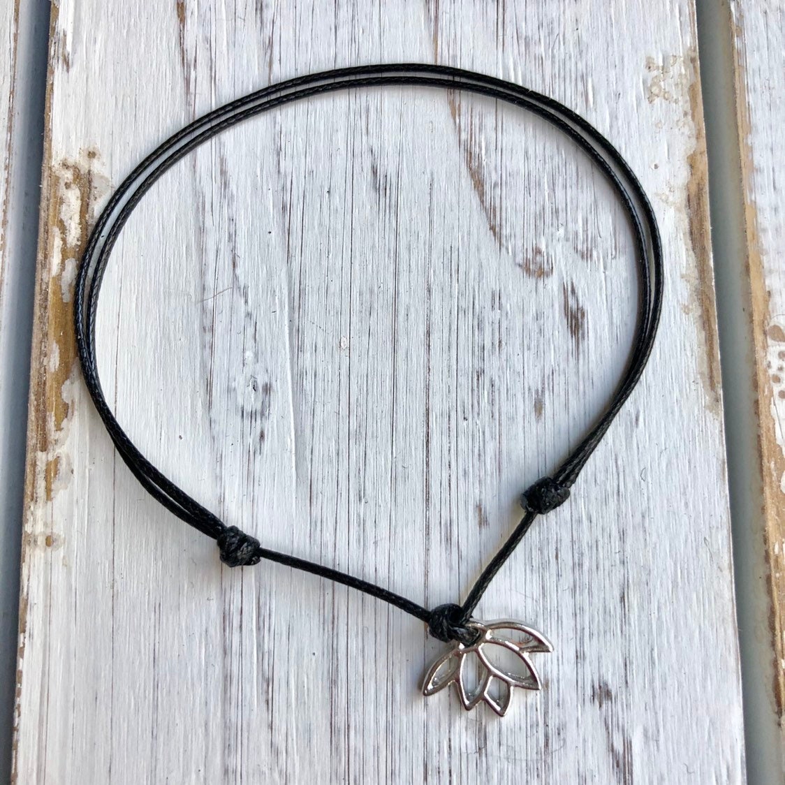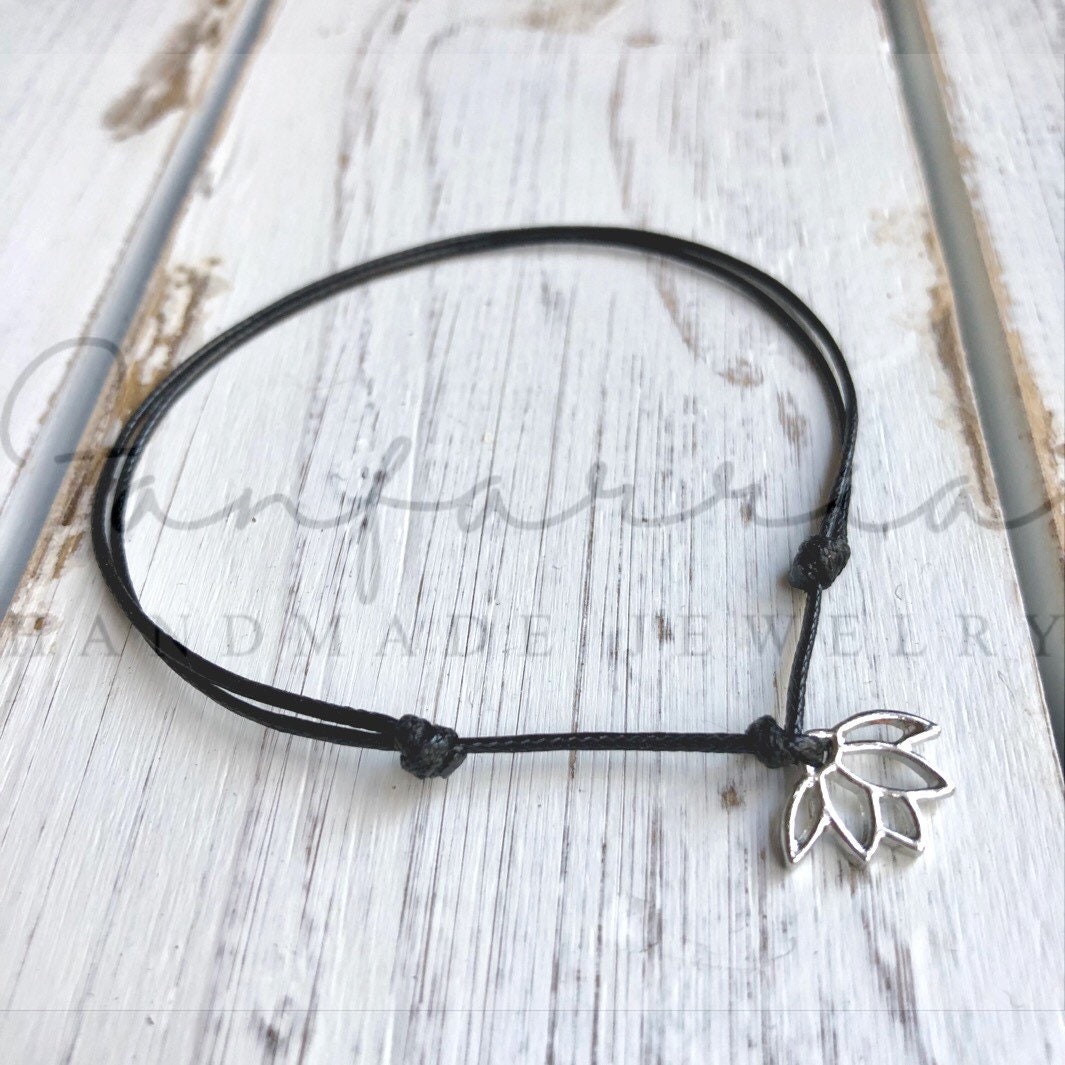 Lotus Anklet, Lotus Flower Black Anklet, Waxed Cord Anklet, Yoga Anklet, Mindfulness gift WA001681