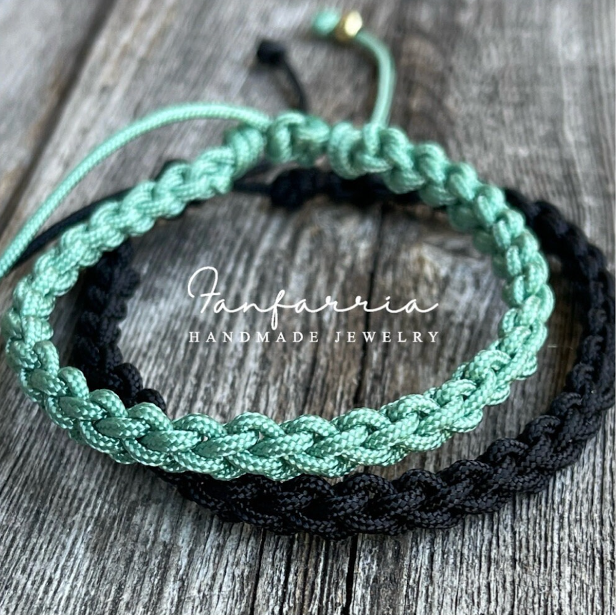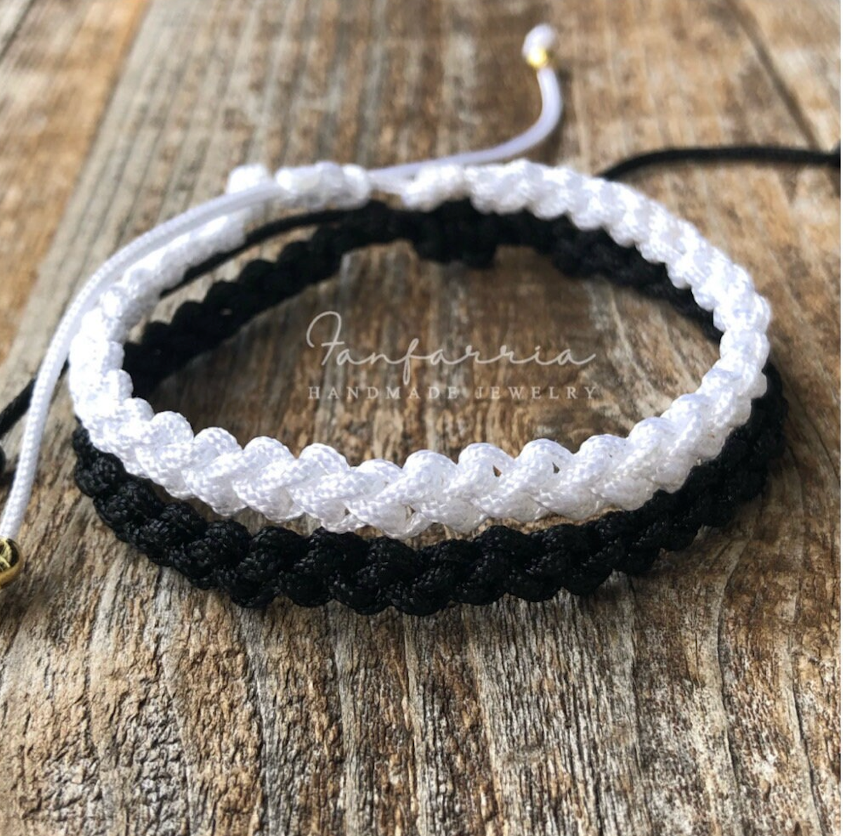Sanibel Celtic Knot Couple Matching Bracelets Black and Beige