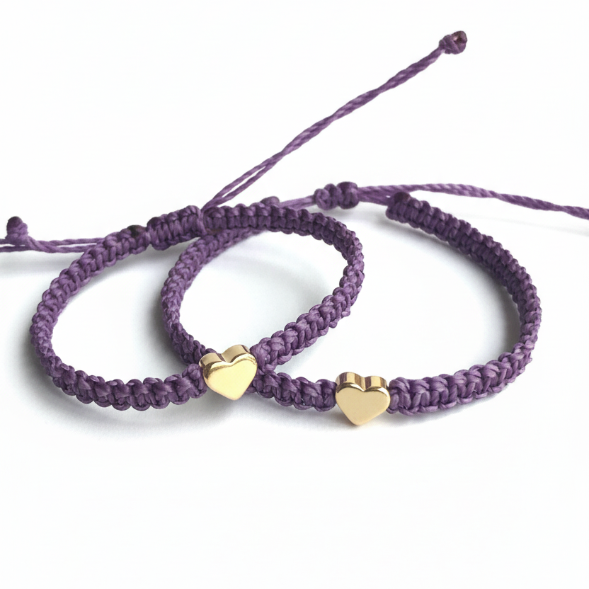 Purple Mommy and Me Gold Heart Matching Bracelets