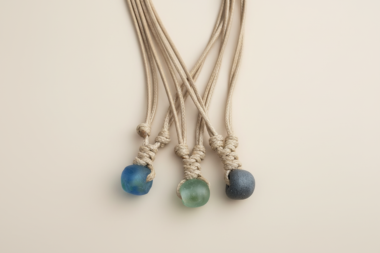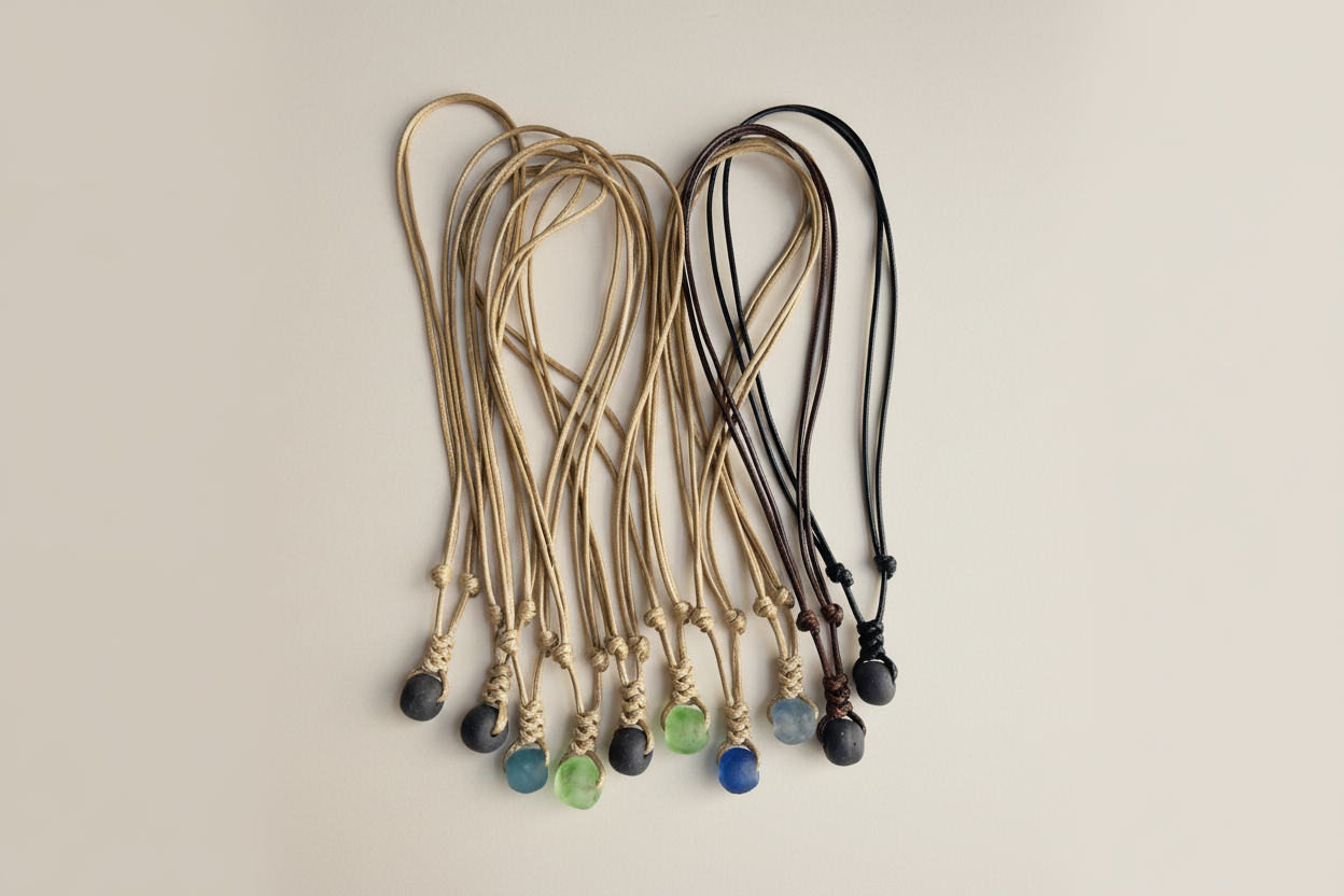 Surfer Sea Glass Necklace Adjustable Waterproof Unisex