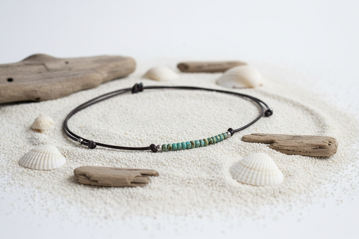 Surfer Turquoise Sea Glass Necklace Adjustable Waterproof Women Men