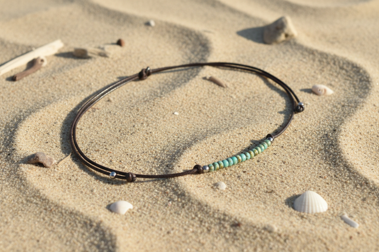 Surfer Green Sea Glass Brown Necklace Adjustable Waterproof Women Men