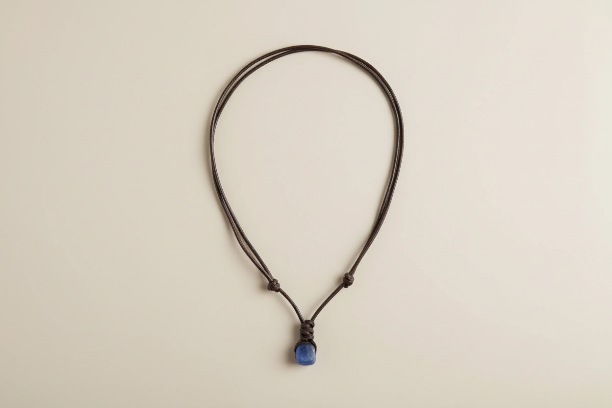 Surfer Deep Blue Sea Glass Brown Necklace Adjustable Waterproof Women Men